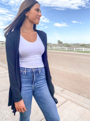 Slouchy Pocket Open Cardigan in Black