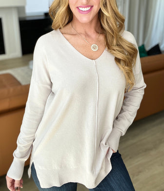 V-Neck Front Seam Sweater in Heather Classic Blue