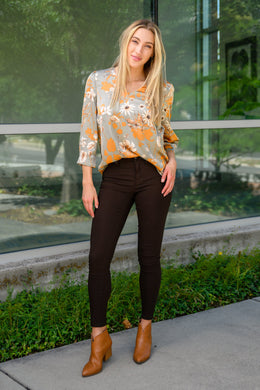 Chantry V Neck Floral Blouse in Sage