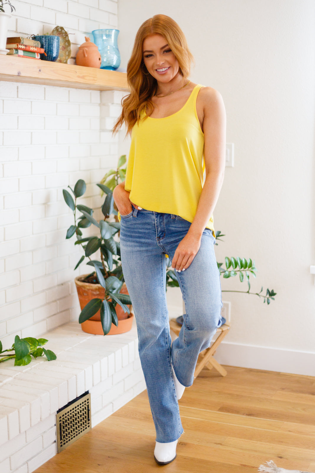 The Can't Get Enough Top In Yellow is going to brighten up all of your fits! Featuring a stretchy, lightweight fabric,  this tank will keep you comfy all day long. A sleeveless cut falls into a round neckline topping a relaxed fit bodice and a double rounded hem.