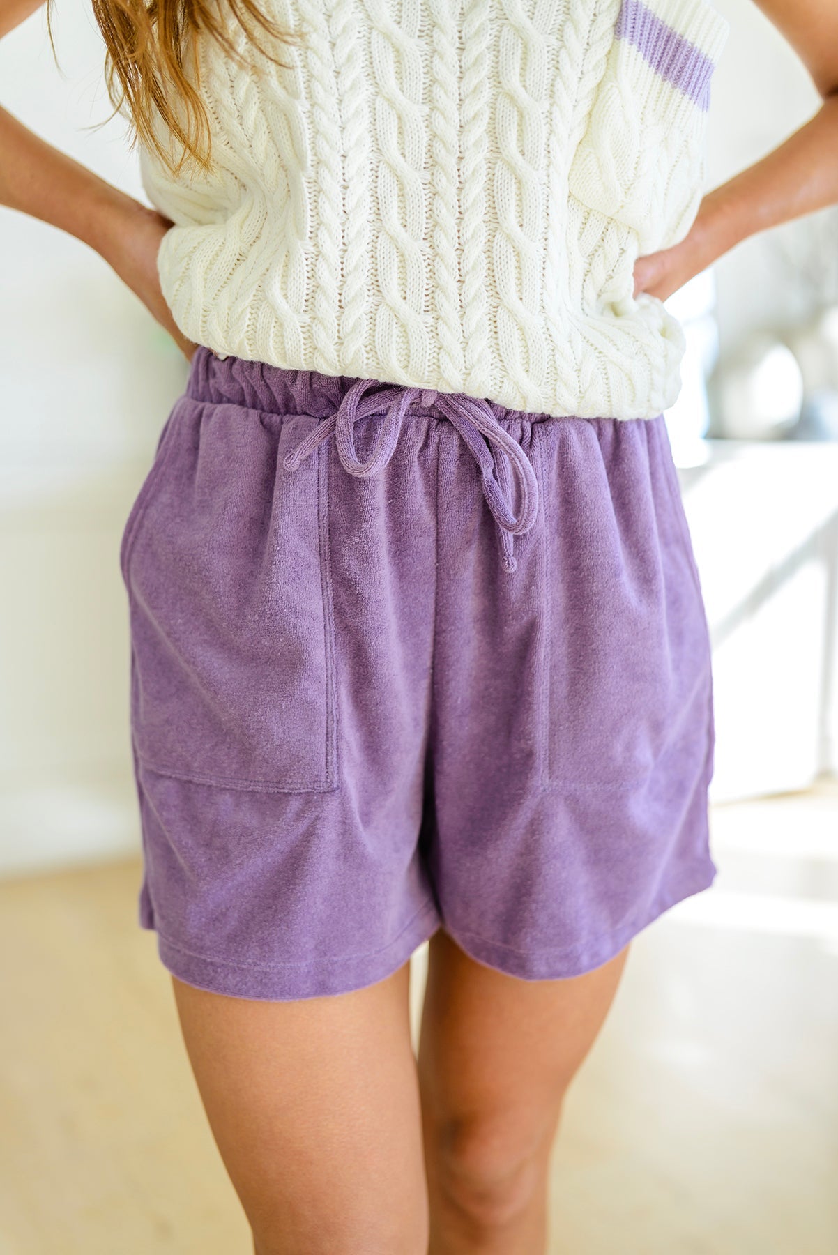 Experience the ultimate in comfort and style with our Carried Away French Terry Shorts. Featuring a high rise, French terry fabric and an elastic waistband with a functional drawstring, these shorts are super fun with a flattering yet relaxed fit. With pockets for keeping your essentials close and a look that pairs seamlessly with casual and activewear, you'll be carried away with these must-have shorts.