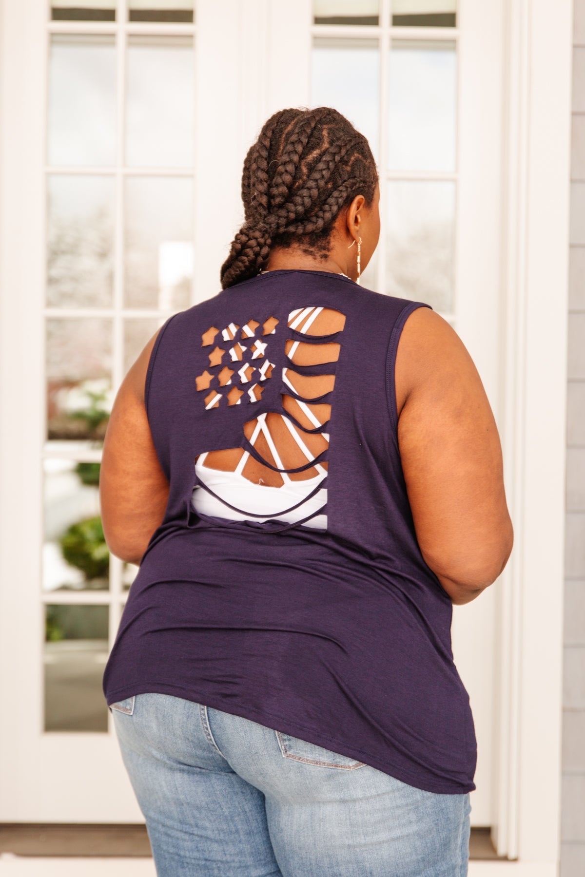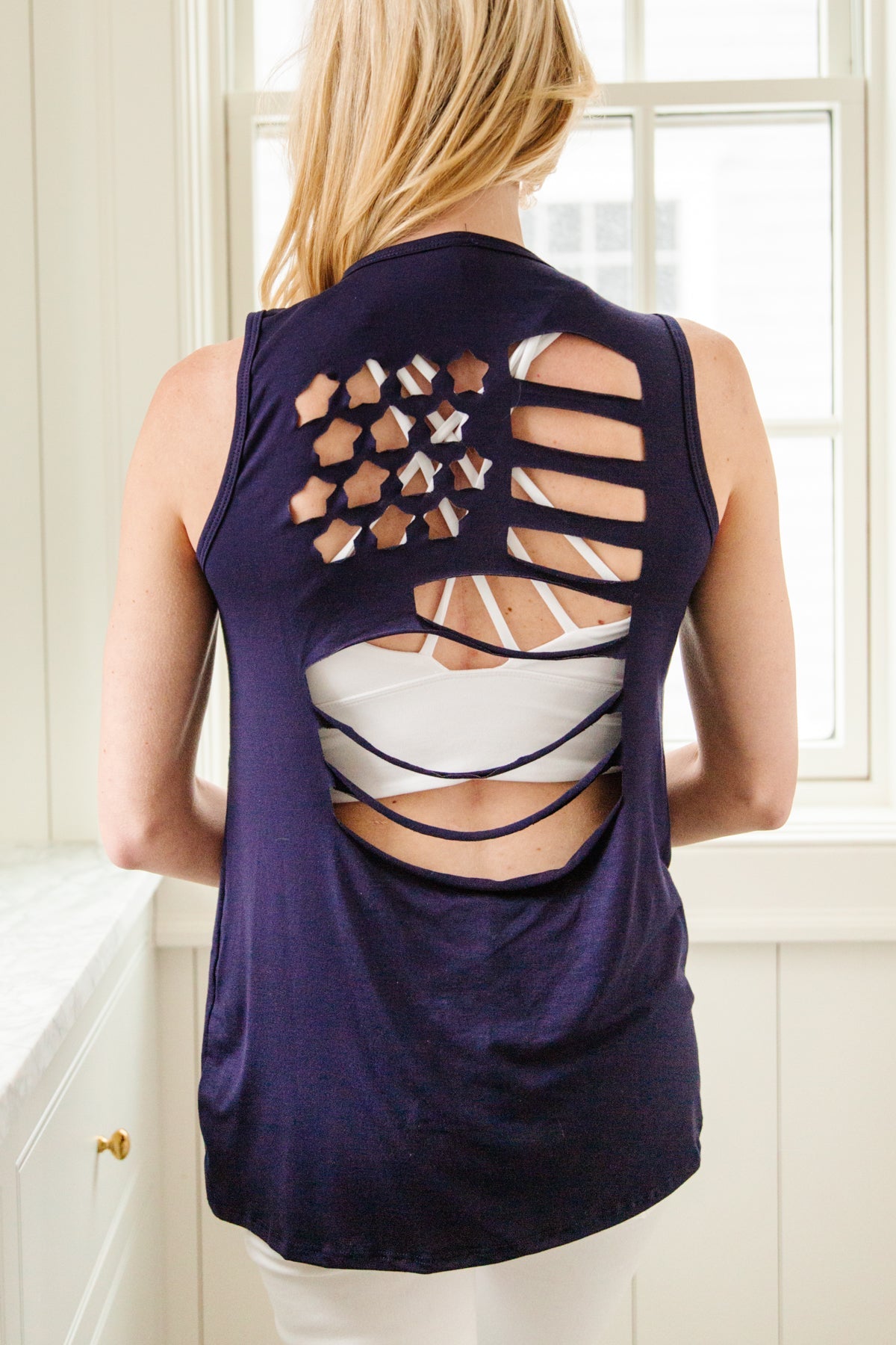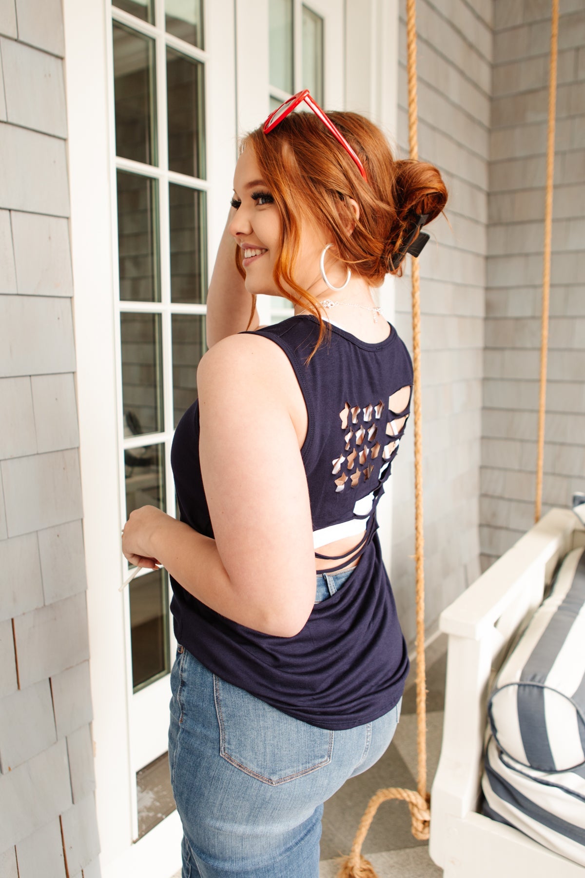 Celebrate the holidays in style with the Land Of The Free Tank! This festive tank features a v-neckline, sleeveless design, and laser cut flag on the back. Pair this stand-out tank with white denim shorts, and sandals for a cute look you'll want to wear over and over again!