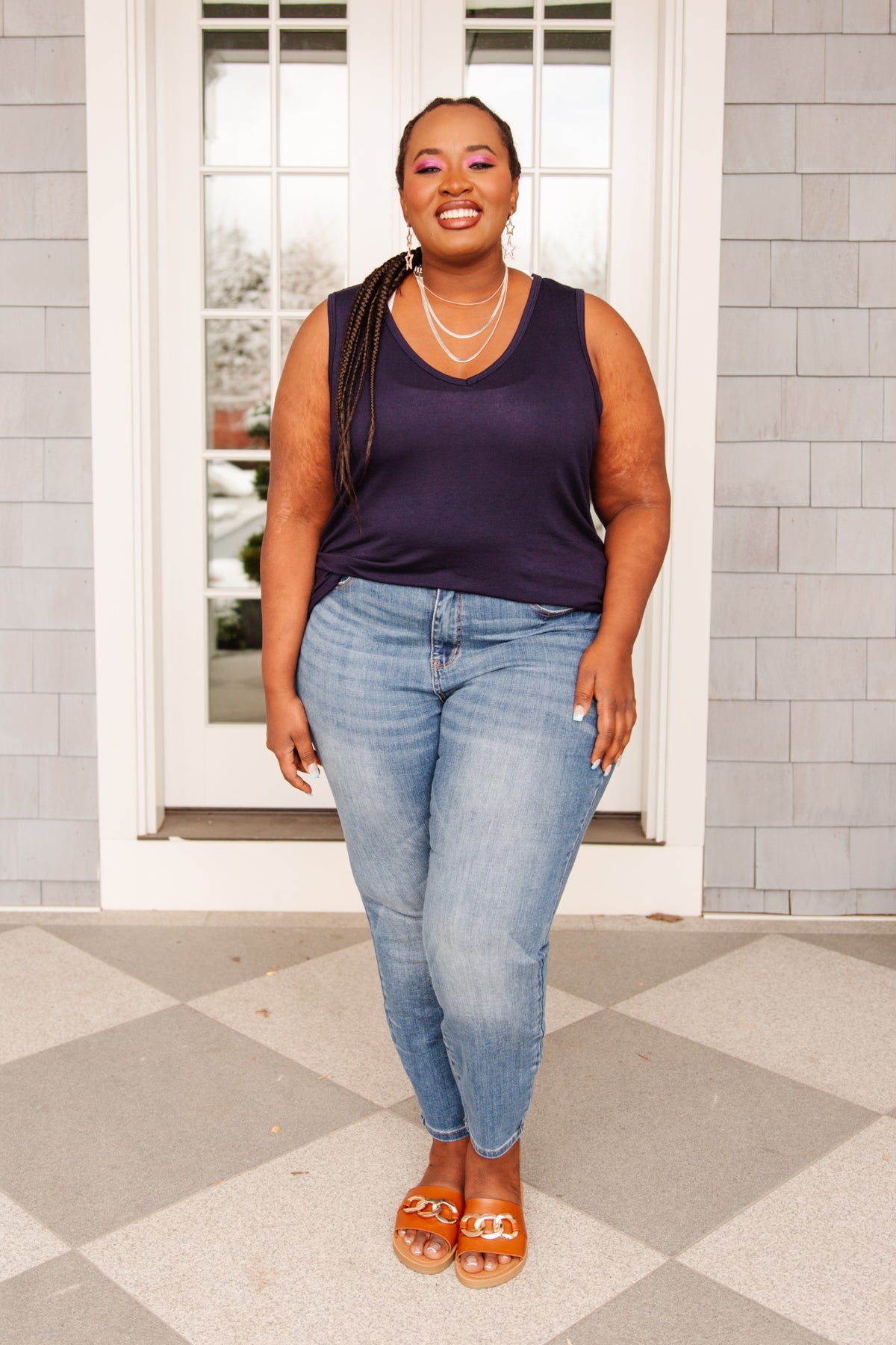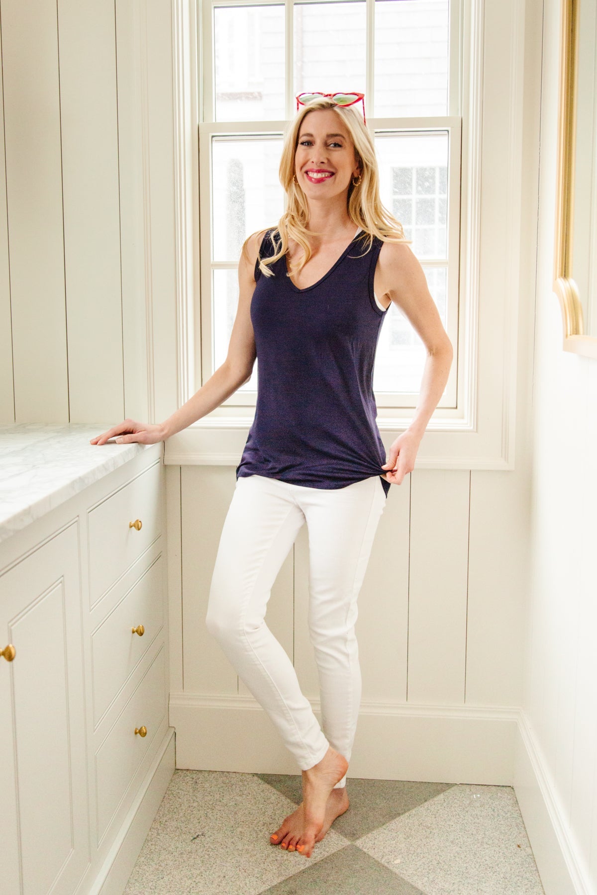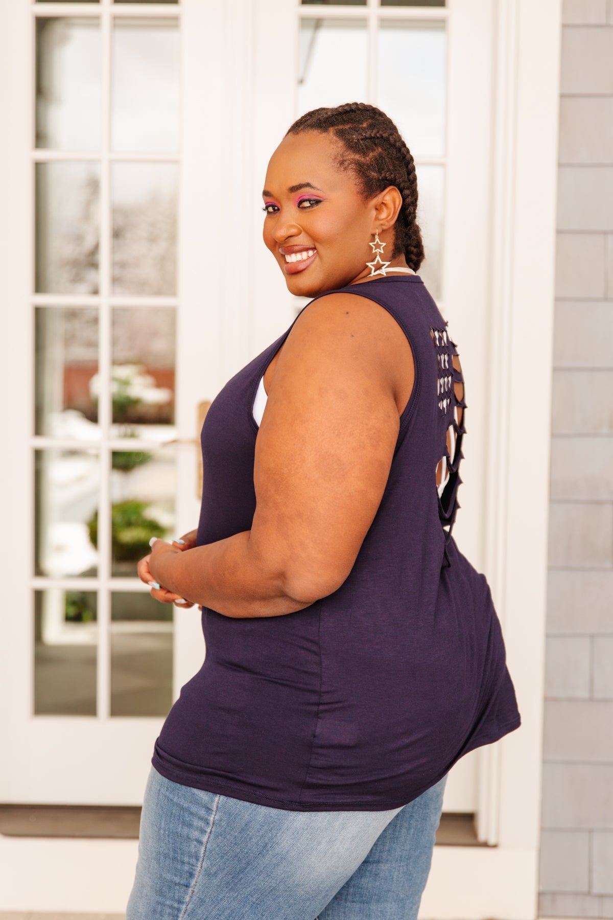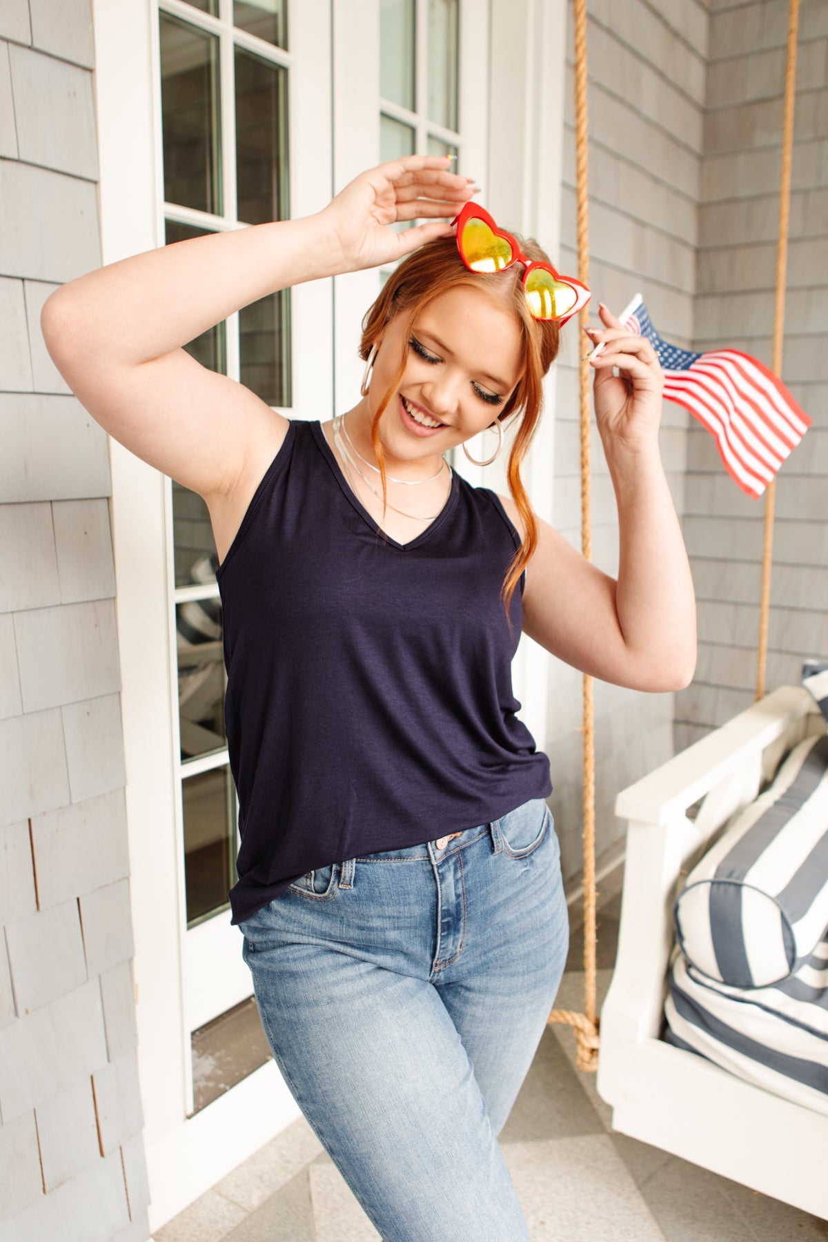 Celebrate the holidays in style with the Land Of The Free Tank! This festive tank features a v-neckline, sleeveless design, and laser cut flag on the back. Pair this stand-out tank with white denim shorts, and sandals for a cute look you'll want to wear over and over again!