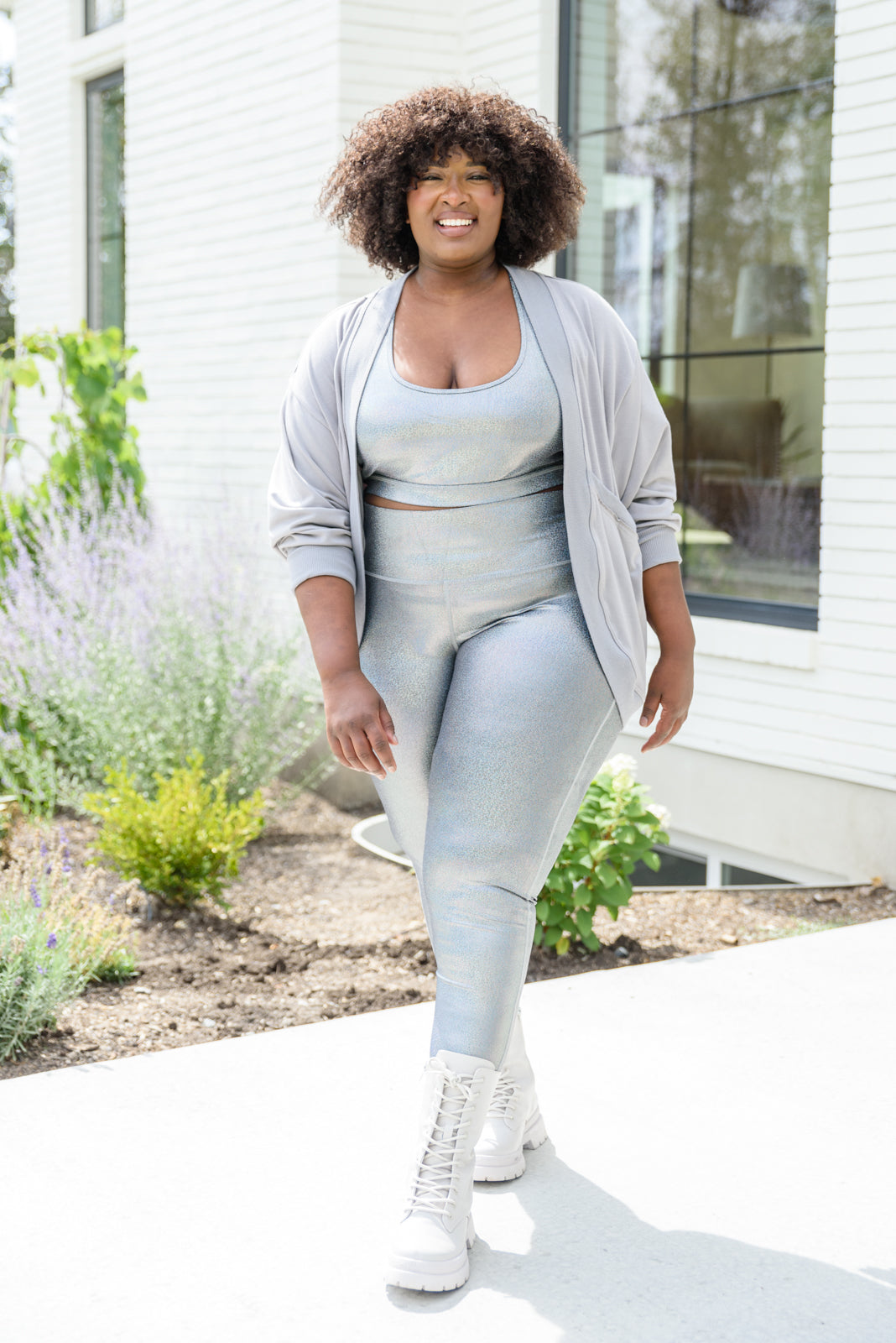 Keywords: Leggings, Sports Bra, Silver, High Waisted