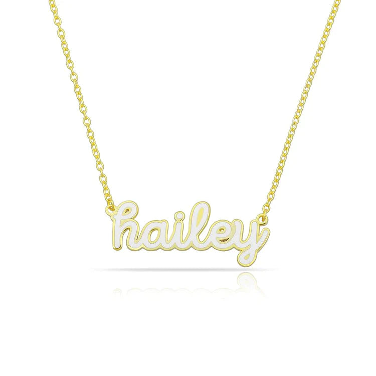 Choose your finish and enamel color options! In Personalized 1 field, please enter the name or word that you'd like on the necklace. Words will be printed exactly as entered so please be sure spelling is accurate!