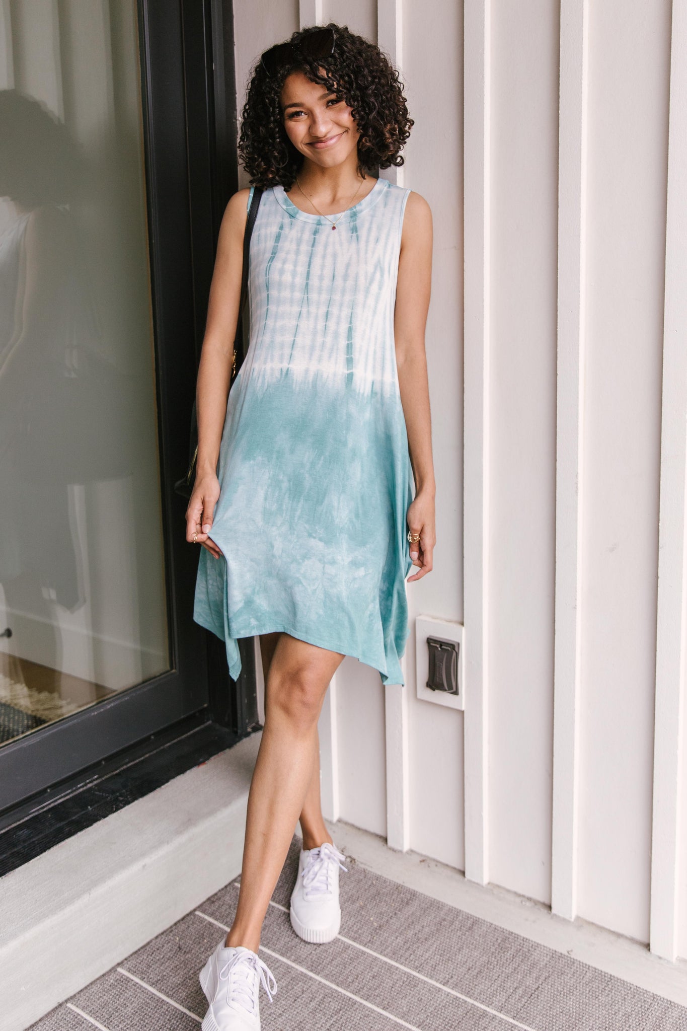 This tidal wave dress is the perfect relaxed t-shirt dress with a twist. It features an amazing a-line hem, wide tank fit on top and comes in an ombre tie-dye print that is beautiful for any vacation, even if it's just a trip to the grocery store.